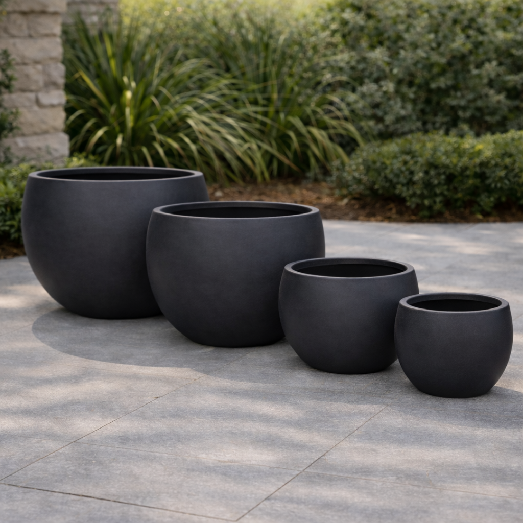 Strong and commanding in form, the Tuscan Titan Pot is designed to anchor a space. With its solid proportions and smooth black finish, it creates a bold architectural base for large feature plants while maintaining a refined, modern look. Suitable for both indoor and outdoor styling.